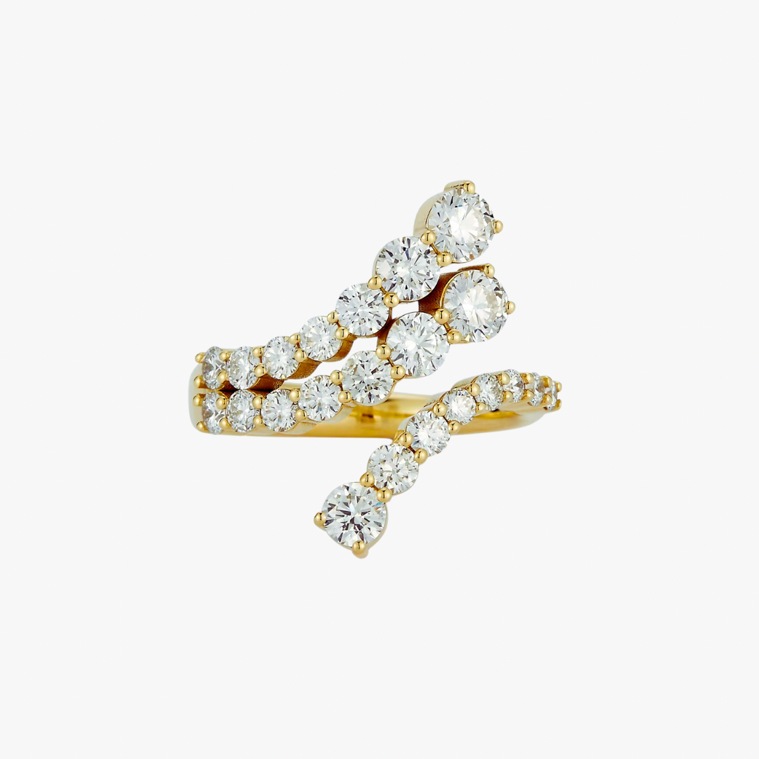 Semi-adjustable ring featuring gradient in size, round-cut stones.